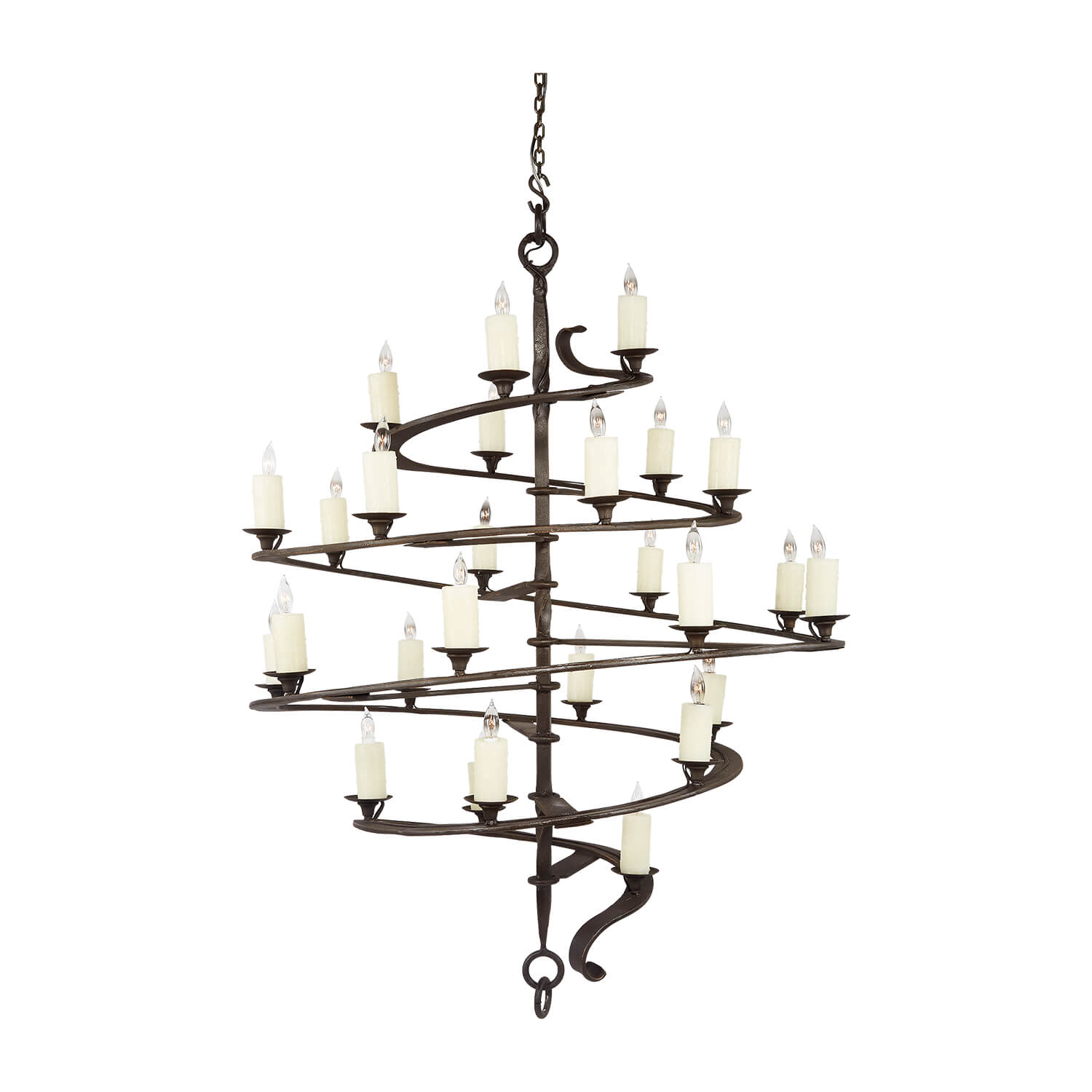 This distinctive spiral design produces a sense of visual motion while providing balanced illumination across multiple levels. The flowing iron bands support candle-style lights that appear to ascend through the chandelier, creating a dynamic lighting effect that works beautifully in grand entryways, stairwells, great rooms, and luxury interiors with tall ceilings.